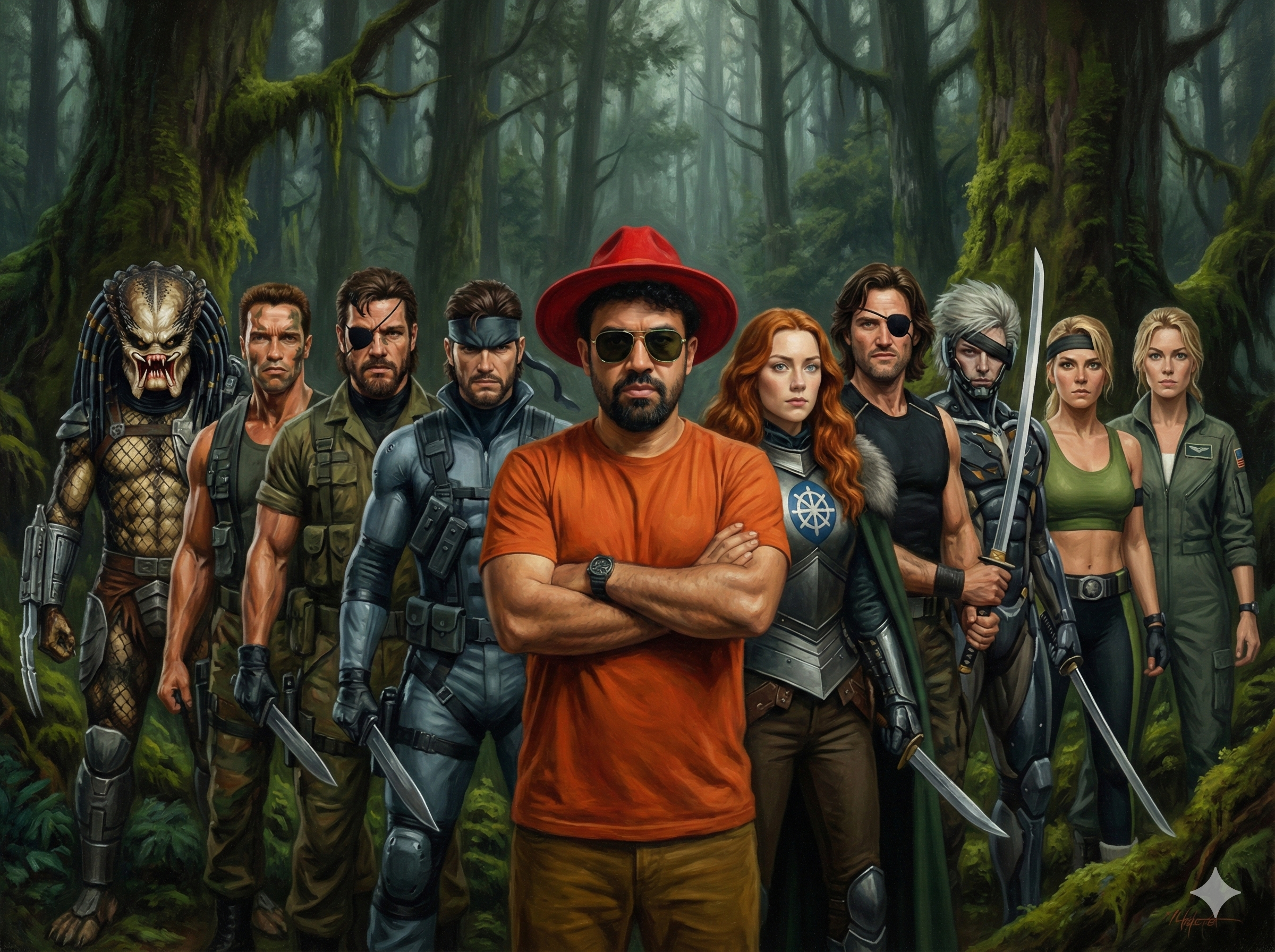 As you can see, the commandos are not really recognizable, apart from the guy in the middle that resembles me (with a red hat and orange T-shirt). And there are characters resembling Predator and Arnold Schwarzenegger.