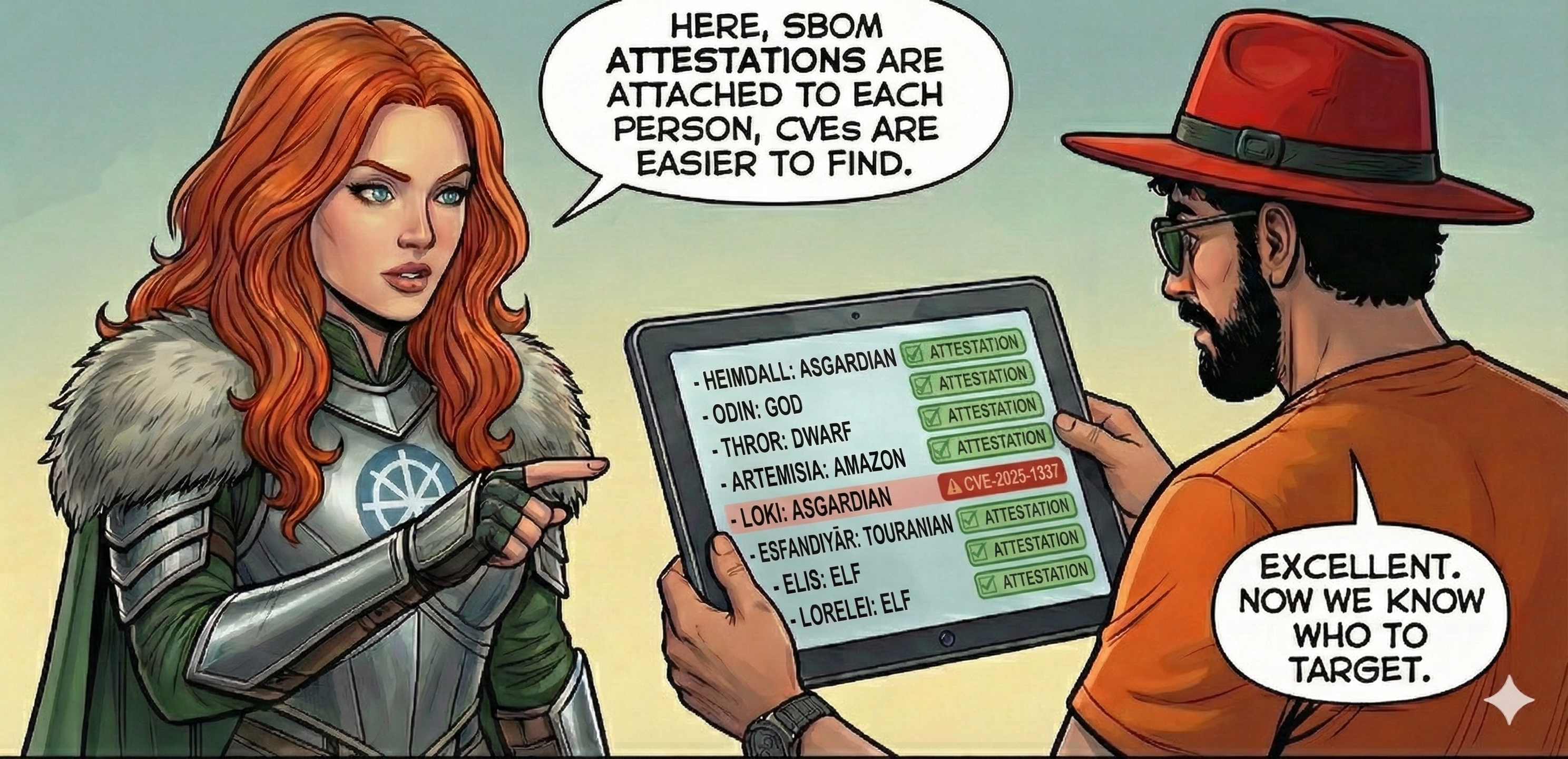 Why signatures matter: An SBOM or VEX statement without a signature is just a claim. Cosign binds the attestation cryptographically to the identity that produced it, so consumers can detect forgery or tampering even after the image has traveled through multiple registries.